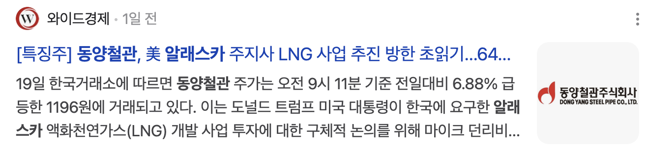 - 미국 가스관 사업 기대감: 알래스카 LNG 개발 사업 참여 가능성으로 인한 주가 상승.