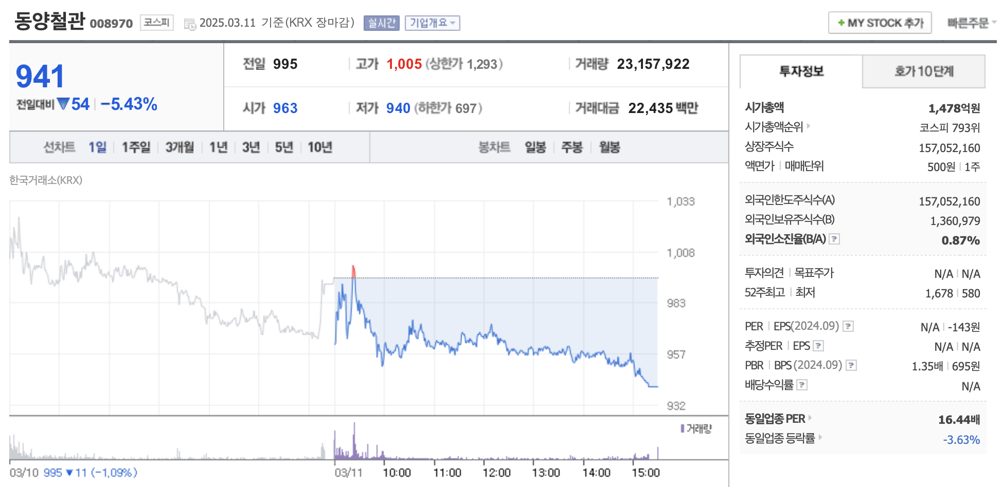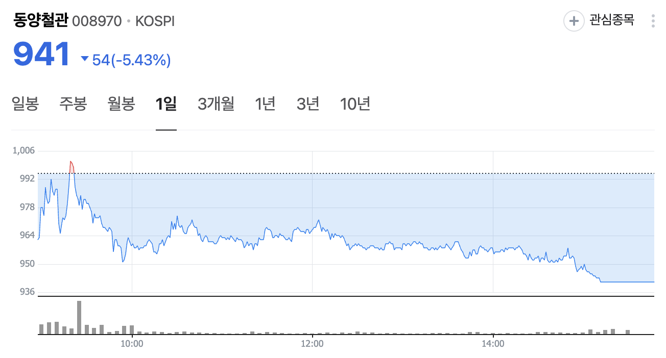 퇴근길에 주식 앱을 열어보니 동양철관(008970)이 5% 넘게 하락한 뉴스를 접했어요. 최근 상승세로 큰 주목을 받았던 기업이라 더 눈에 띄었어요. 강관 업체의 잠재력을 지켜보며, 오늘 주가가 941원에 마감한 걸 보니 궁금증이 생겼습니다. 동해 가스전 소식이 화제인데, 차분히 분석하며 정리해 보겠습니다.