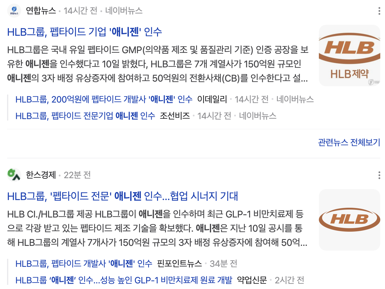 오늘(3월 10일) “HLB그룹, 애니젠 인수로 펩타이드 기술 확보”라는 기사가 나왔어요. HLB의 200억 원 유상증자와 400억 원 전환사채 인수로 재무 안정성이 높아졌고, 비만치료제 개발 시너지가 기대됩니다. 다만, 기존 재무 부담 우려는 여전히 남아 있어요.