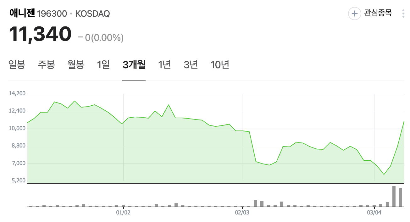 애니젠(196300)이 시간외 거래에서 상한가를 기록하는 등 매우 놀라운 흐름을 보이고 있으며 현재 주가는 11,340원을 유지하고 있습니다. 바이오주 변동성에 익숙하지만, 이번 상승은 눈길을 끌었습니다. HLB그룹 인수 소식이 화제인데, 차분히 들여다보며 정리해 보겠습니다.