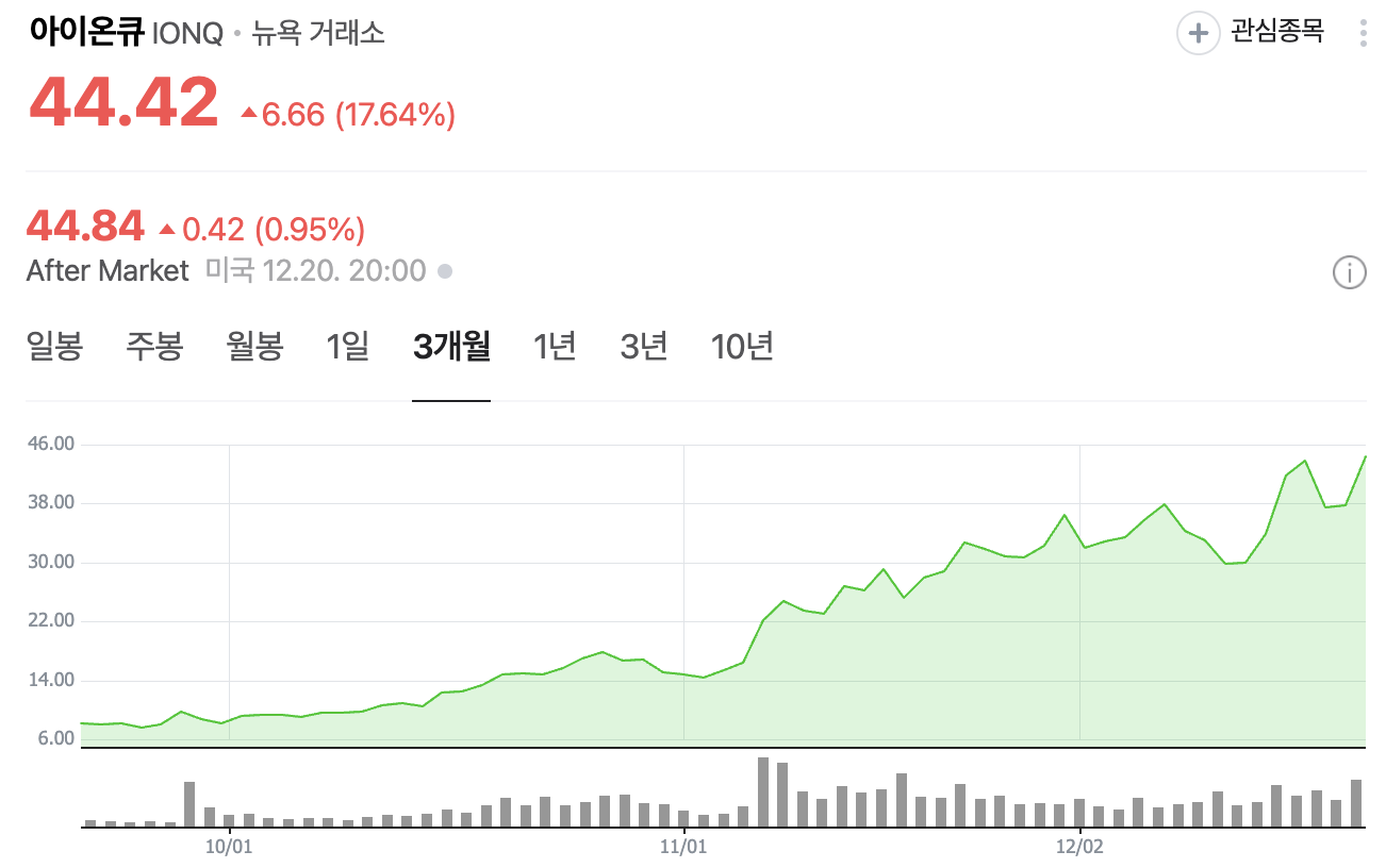 아이온큐는 2021년 10월에 주식시장에 상장되었으며, 양자 컴퓨팅 분야에서 기술적 우위를 확보하고 있는 것으로 평가받고 있습니다.