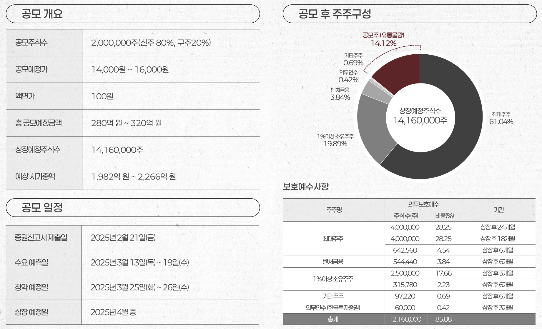 - 주관사 투자 이력: 한국투자증권이 작년 4월 주당 8,000원에 투자했는데, 공모가(16,000원)의 절반이라니 놀랍죠.