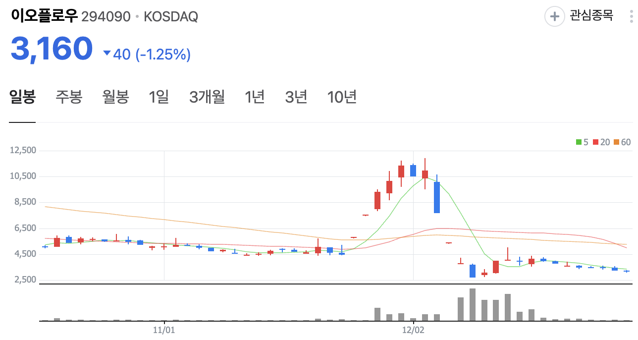 11월에서 12월 초까지 이오플로우 주가가 급등하며 많은 투자자들의 관심을 받았습니다.