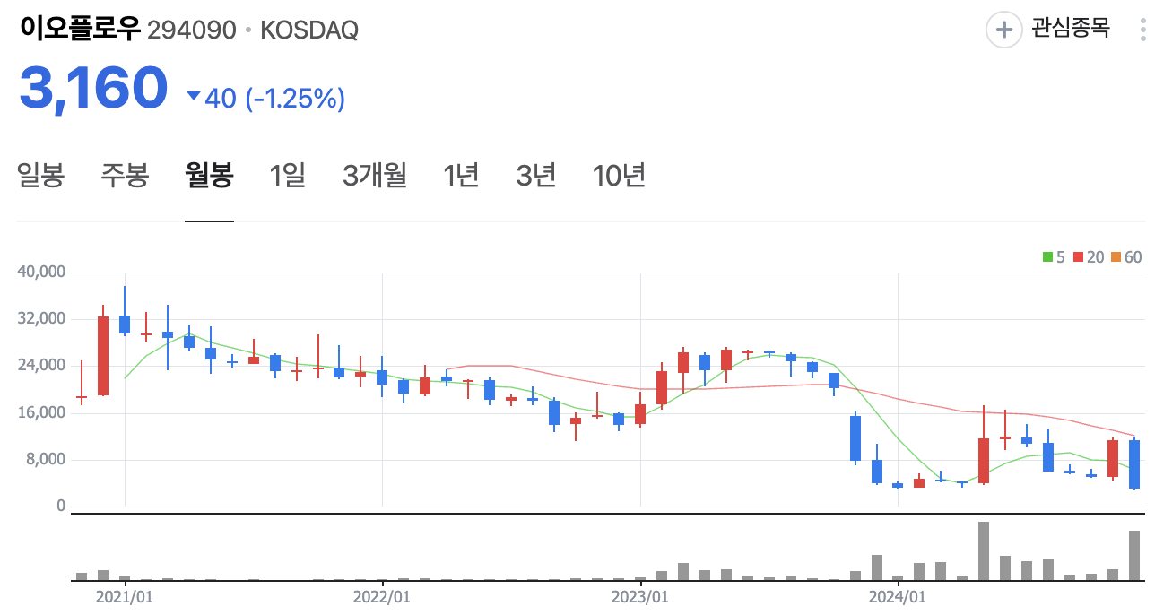 저는 이오플로우에 약간의 금액을 투자하여 주가 변동성을 직접 경험하였습니다.(다행히 최근 급반등 시에 수익 실현을 하였습니다.)