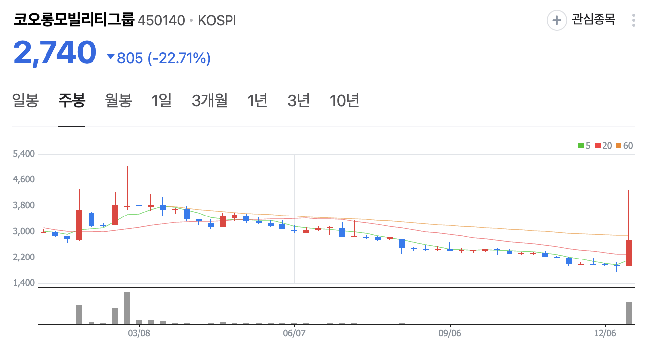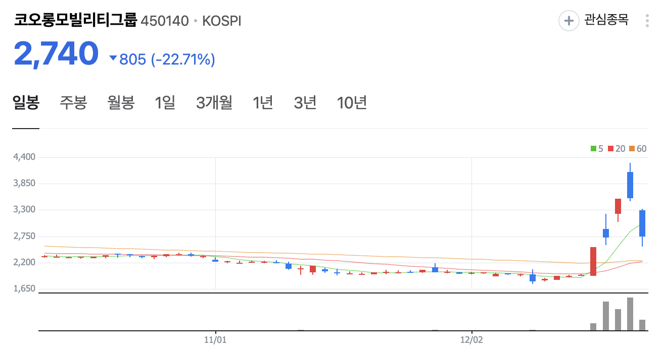 안녕하세요, insightbomb입니다. 최근 관심을 갖고 지켜보던 코오롱모빌리티그룹 주가가 급등하여 상한가를 기록했습니다. 급등 이유와 주가 전망을 자세히 분석해 보겠습니다.
