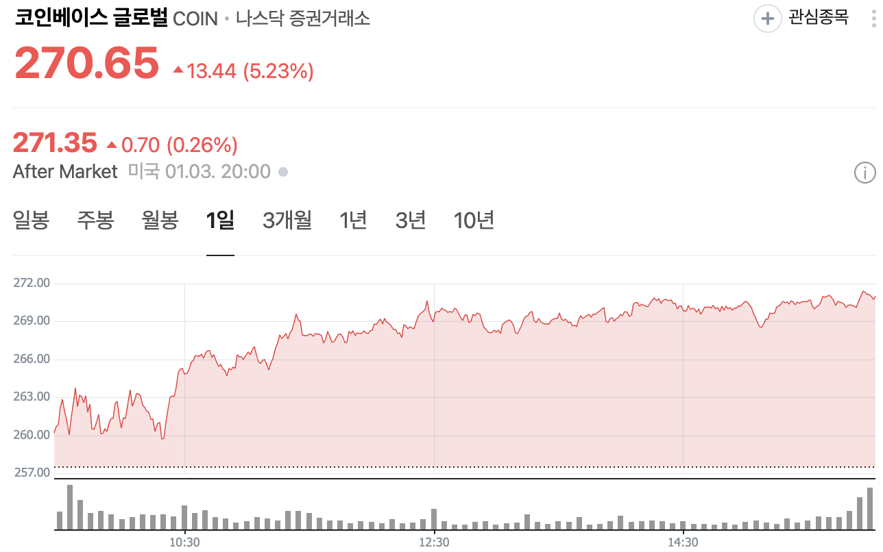 이런 흐름이 코인베이스 주가 상승에 긍정적인 영향을 미쳤습니다.