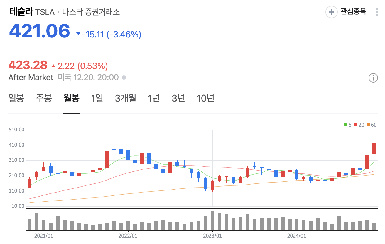 테슬라의 향후 주가는 모델Q 출시와 전기차 시장 확장, 그리고 재생에너지 부문의 성장에 크게 의존할 것으로 보입니다. 단기적으로는 최근 급등한 주가로 인해 조정 가능성이 있지만, 장기적으로는 지속적인 성장 가능성을 지닌 종목으로 평가받고 있습니다.
