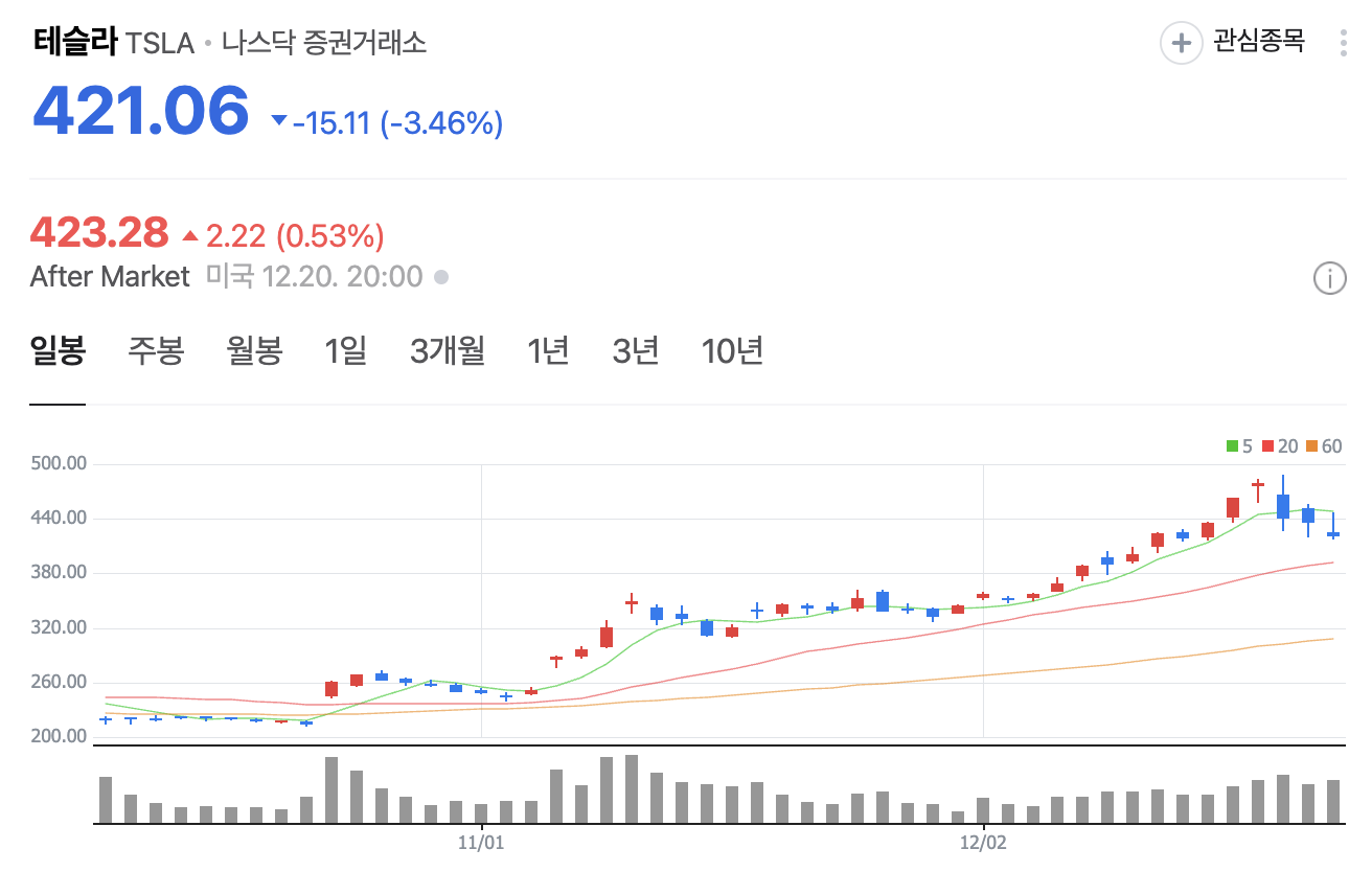 최근 미국 주식시장에서 테슬라 주가는 빠르게 상승하며 긍정적인 흐름을 보이고 있습니다. 이는 일론 머스크라는 걸출한 리더와 테슬라의 혁신적인 기술력, 그리고 내년 출시 예정인 저가형 전기차 모델Q에 대한 기대감이 반영된 결과로 보입니다.