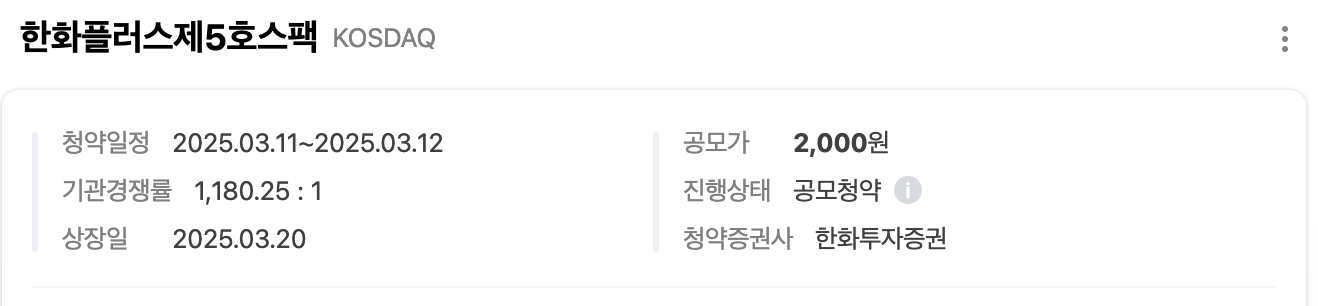 스팩은 기업 인수합병을 위한 페이퍼컴퍼니로, 따로 깊게 다루진 않겠습니다. 간단히 정보 정리합니다.