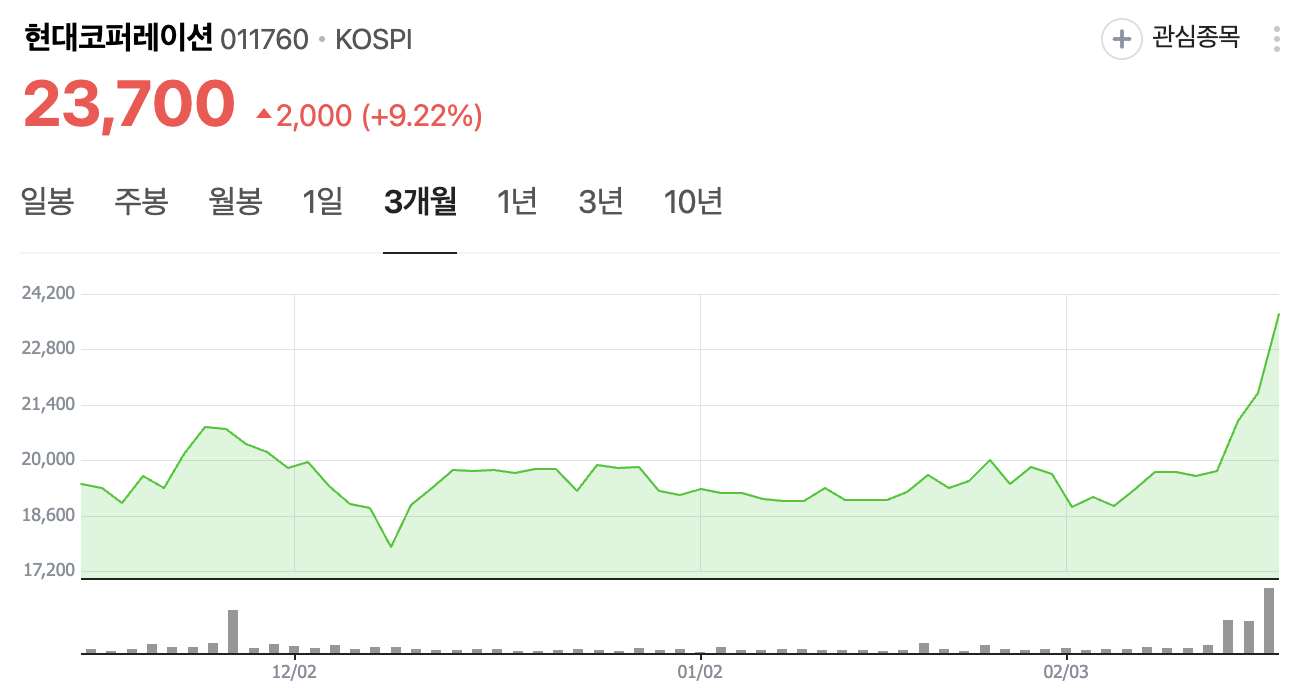 📢 현대코퍼레이션 긴급 최신 뉴스 (2025년 2월 17일 장 마감 기준)