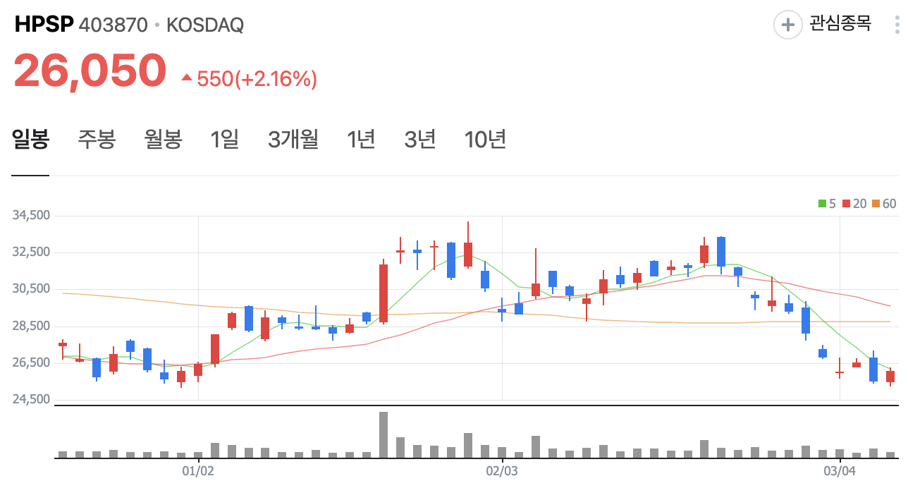 최신 수급을 보면, 3월 들어 기관과 외국인이 매수세를 강화했어요. 3월 5일까지 개인 매도가 우세했지만, 오늘은 거래량이 늘며 기관과 외국인 매수가 두드러졌습니다. X 포스트에서도 “HPSP에 기관 자금이 유입되고 있다”는 글이 보였고, 이는 TSMC 수주 소식과 맞물린 흐름으로 보입니다. 수급이 개선되고 있지만, 변동성에 대한 경계는 필요해 보입니다.