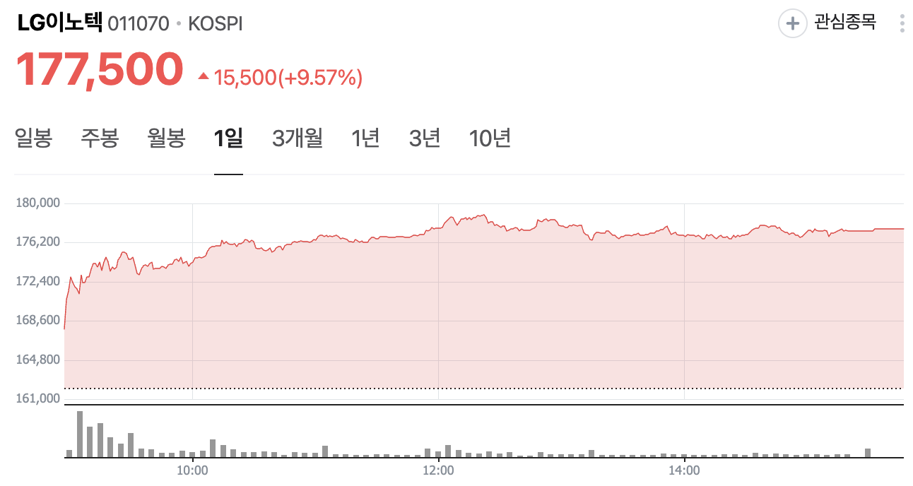 오늘 LG이노텍 주가가 9% 급등하며 투자자들의 관심을 받고 있습니다. 흔치 않은 변동성이므로 이번 상승의 원인과 향후 전망을 함께 살펴보겠습니다.