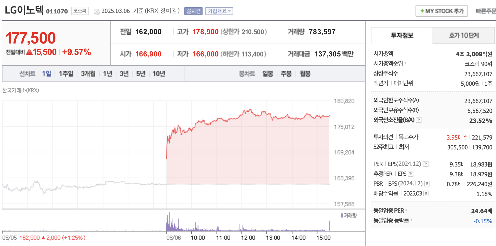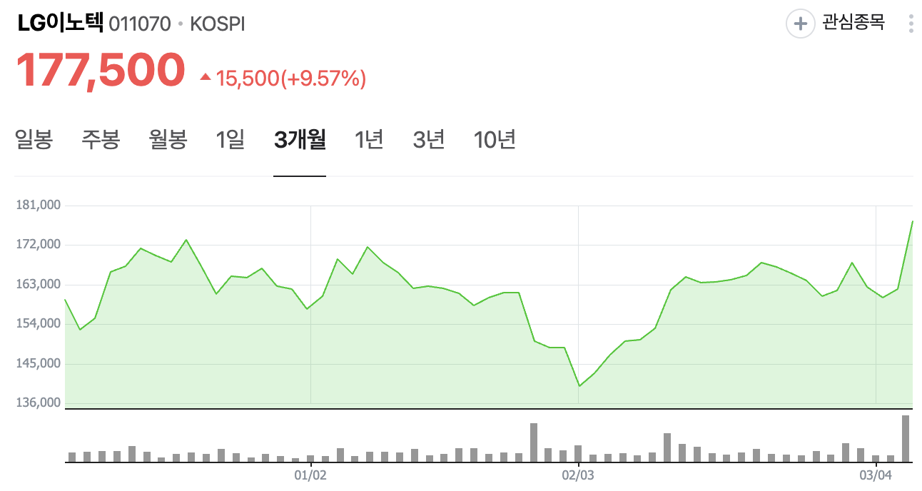 오늘 LG이노텍 주가가 9% 급등하며 투자자들의 관심을 받고 있습니다. 흔치 않은 변동성이므로 이번 상승의 원인과 향후 전망을 함께 살펴보겠습니다.